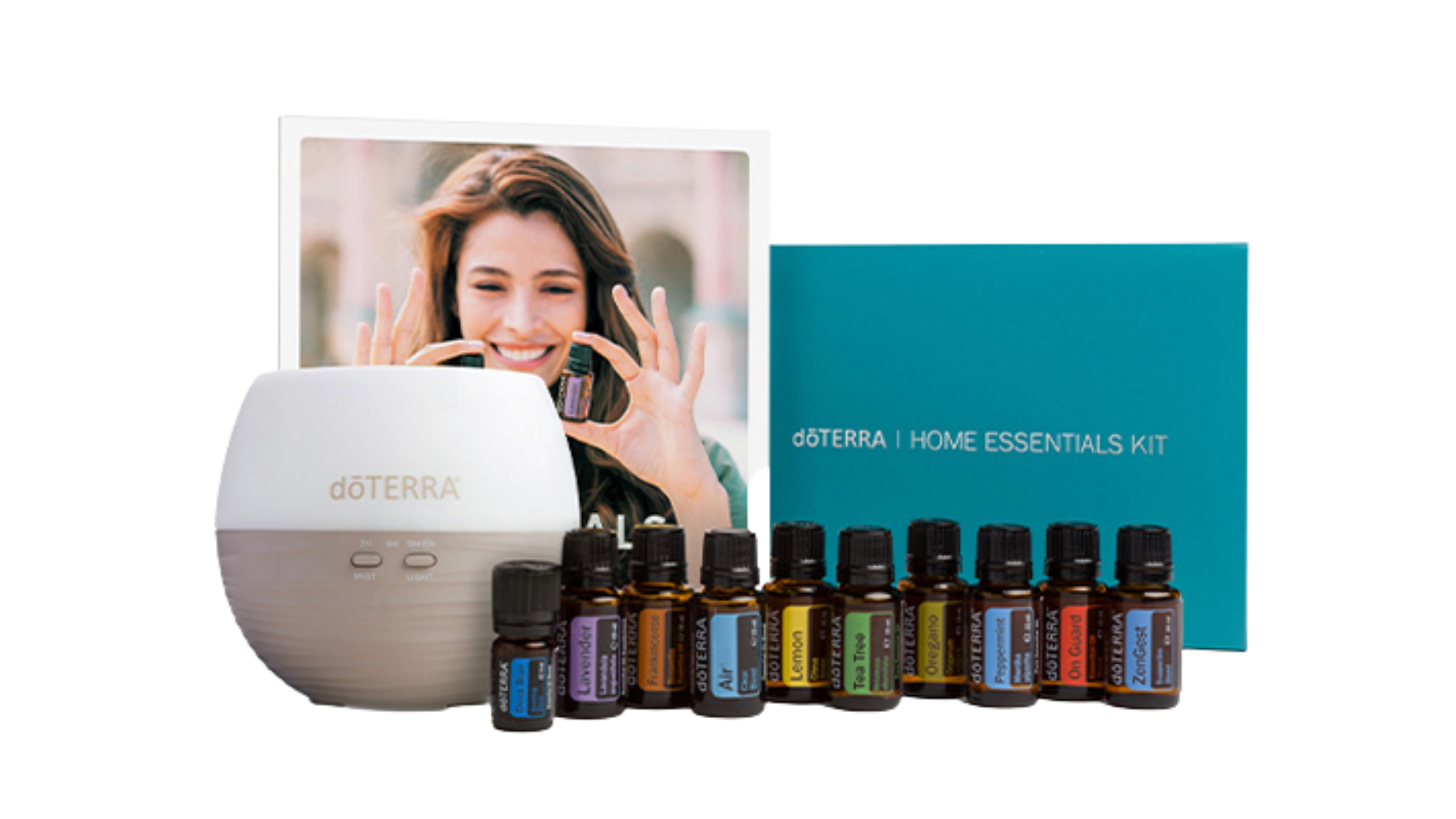 Inhalt: In 15ml - Weihrauch, Lavendel, Zitrone, Teebaum, Oregano, Pfefferminze, Air, On Guard, ZenGest. In 5ml - DeepBlue. Zubehör - Petal Diffuser, Rundum Sorglos-Paket.